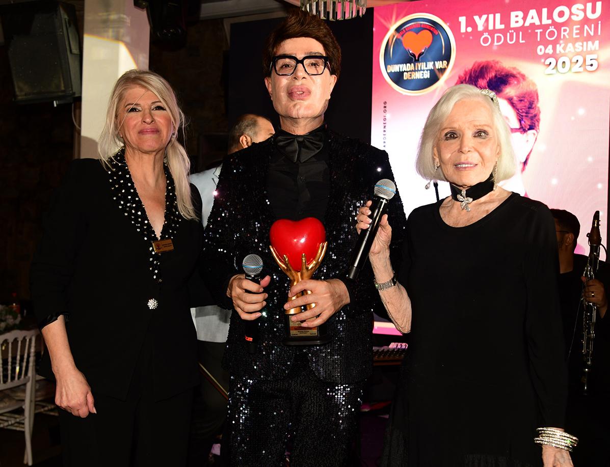 Kurulduğu günden bugüne kadar yaptıkları “iyilik” hareketleri ile dikkatleri üzerine çeken “Dünyada İyilik Var Derneği” birinci kuruluş yıldönümünü önceki gece görkemli bir gece ile kutladı. Başkanlığını iş insanı Menekşe Kankavi’nin yaptığı ve başkan Yardımcısı Hakim Seval Karataş, dernek AB sorumlusu Ceren Kankıran, muhasip üye Av. Ömer Faik Çetiner ve dernek genel sekreteri Arif Işık’tan oluşan yönetim kurulu üyelerinin ev sahipliğinde Sel Lojistik firmasının daimi destekleri ile gerçekleşen geceye çok sayıda davetli katıldı. Dernek genel koordinatörü ve Vizyon Production sahibi Atilla Kaplakarslan tarafından organize edilen, İshak Akbay’ın sunuculuğunu, kırmızı hali röportajlarını ise 7. Sinemanın Kraliçesi unvanına sahip Ecrin Saygın’nın yaptığı kutlama ve ödül töreni gecesine katılanlar isimler arasında Gönül Yazar, Salih Güney, Coşkun Sabah, Volkan Severcan, Burhan Şeşen, Gökhan Şeşen, Hilal Özdemir, Ömür Gedik, Ferman Toprak, 1996 Türkiye Güzeli Sevilay Öztürk, iş insanı Vedat Uğurlu, Gülden Kalecik Demirtaş ve Vahe Kılıçkarslan yer aldılar. Çeşitli dallarda ödüllerin de dağıtıldığı gecede Gönül Yazar, Salih Güney, Volkan Severcan, Burhan Şeşen, Gökhan Şeşen ve Hilal Özdemir’e yaşam boyu meslek ve onur ödülleri verildi. Gecenin akışı içinde ünlü müzayedeci Uğur Batur tarafından düzenlenen müzayede de ise altın varak çerçeveli Atatürk tablosunu Av. Kasım Aksoy “Dünyada İyilik Var Derneği” yararına satın alırken, bronz Atatürk heykelini ise Kadriye Olgar “Haçiko” derneği yararına satın aldı.Gönül Yazar geceye renk kattı…Geceye katılarak Yaşam Boyu Meslek Onur Ödülü alan Türk sanat müziğinin ünlü assolisti Gönül Yazar uzun süren rahatsızlığı ile beş yıldır evine kapanarak hiç dışarı çıkmadığını söyledi. Bu dönemde çok kilo kaybettiğini belirten sanatçı “Çok hastaydım. Beş yıl sonra evimden bu gece için ilk kez dışarı çıktım. İyi ki de çıkmışım. Çok kilo kaybettim kilolu insanlara imreniyorum. Bol bol makarna yiyerek kilo almaya çalışıyorum” dedi. Sahnede sanatçı dostları ile şarkılar söyleyen Gönül Yazar, kendisini sahneye davet eden Yılmaz Morgül ile de merhum sanatçı Kayahan’nın “Gönül sayfası” adlı şarkısını düet yaparak söyledi. En son altı yıl önce sahneye çıkan sanatçı sahnede duygu dolu anlar yaşadı.Menekşe Kankavi “Çok önemli işler yaptık”…Dünyada İyilik Var Derneği başkanı Menekşe Kankavi gecenin açılış konuşmasında “Biz bir grup hayırsever iyiliksever olarak bir yılda çok güzel işler başardık. Çok iyilikler yaptık. Özellikle de sevgili kurucu üyemiz hayırsever sanatçı Yılmaz Morgül’e, derneğimizin genel koordinatörü Atilla Kaplakarslan’a ve tüm yönetim kurulu üyelerimize, Türkiye’de ve dünyanın çeşitli ülkelerindeki temsilcilerimize tek tek teşekkür ediyorum. Çok daha güzel şeyler yapacağız” dedi.Coşkun Sabah & Gönül Yazar “60 yıllık dostluğumuz var”Gecede bir araya gelen “Taş Bebek” lakaplı ünlü assolist Gönül Yazar ile Coşkun Sabah uzun süredir görüşemediklerini söyleyerek hasret giderdiler. İki ünlü sanatçı sohbetleri sırasında 1965 yılından beri tanıştıklarını söylerken Gönül Yazar, Coşkun Sabah bestesi olan “Baharı Bekleyen Kumrular Gibi” adlı şarkı ile yıllar önce altın plak aldığını söyledi. Sahneye çıkan Coşkun Sabah bu şarkıyı Gönül Yazar için söylerken ikili bir ara şarkıyı düet yaptılar.Yılmaz Morgül “Taş Bebek” Gönül Yazar’ı anlatan şarkı “Gönül Sayfam” dırDernek kurucu üyesi olan usta sanatçı Yılmaz Morgül gecede canlı sahne performansı ile alkış aldı. Sahnede Gönül Yazar ile birlikte merhum sanatçı Kayahan’nın “Gönül Sayfam” adlı şarkısını birlikte okurken “Bu şarkı Gönül Yazar’ı en iyi anlatan şarkıdır. Onun hayat hikayesini biliyorum, Gönül Yazar’ın hayat hikayesinden çok şey öğrendim” dedi.Gecede kimlere hangi ödüller ve plaketler verildi…