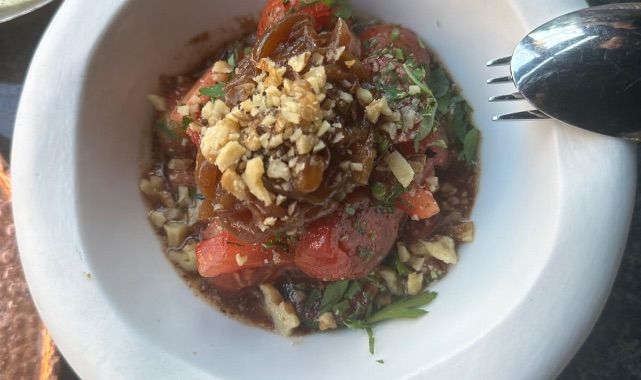 İstanbul Salata (650₺): Domates, kırmızı soğan, koruk ekşisi ve cevizle hazırlanıyor